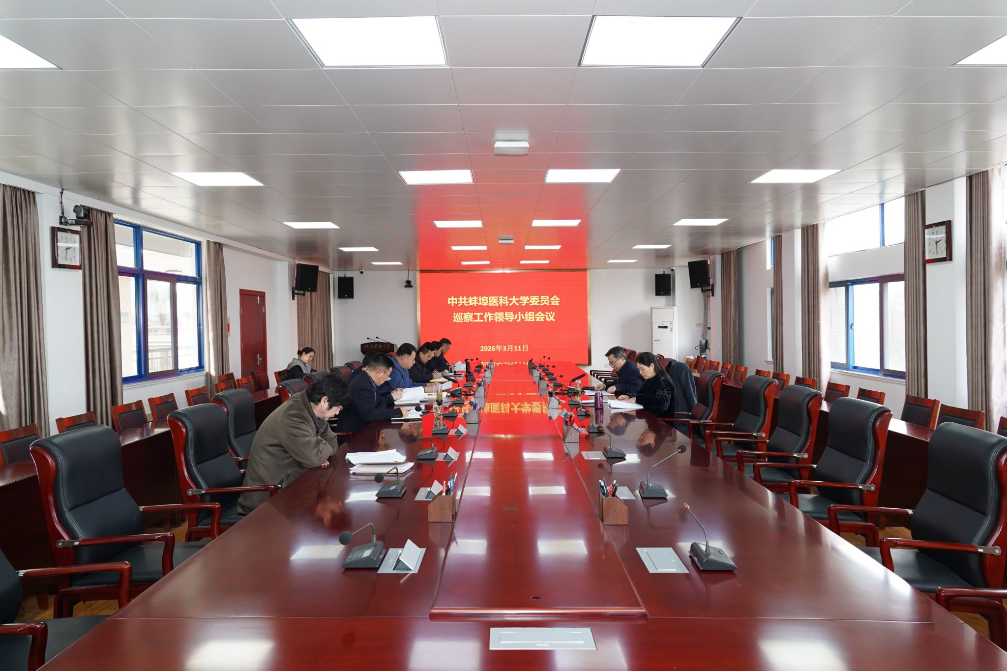 会议书面传达学习了习近平总书记在二十届中央纪委五次全会上的重要讲话精神、《习近平谈治国理政》第五卷中“进一步健全全面从严治党体系,开辟百年大党自我革命新境界”相关篇目,深刻领会新时代全面从严治党的战略部署。会议审议并原则通过《中共蚌埠医科大学第一届委员会第三轮巡察工作方案》,明确本轮巡察总体安排、监督重点与工作要求。